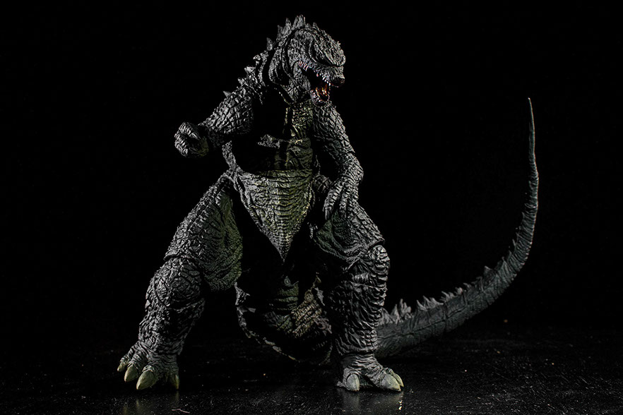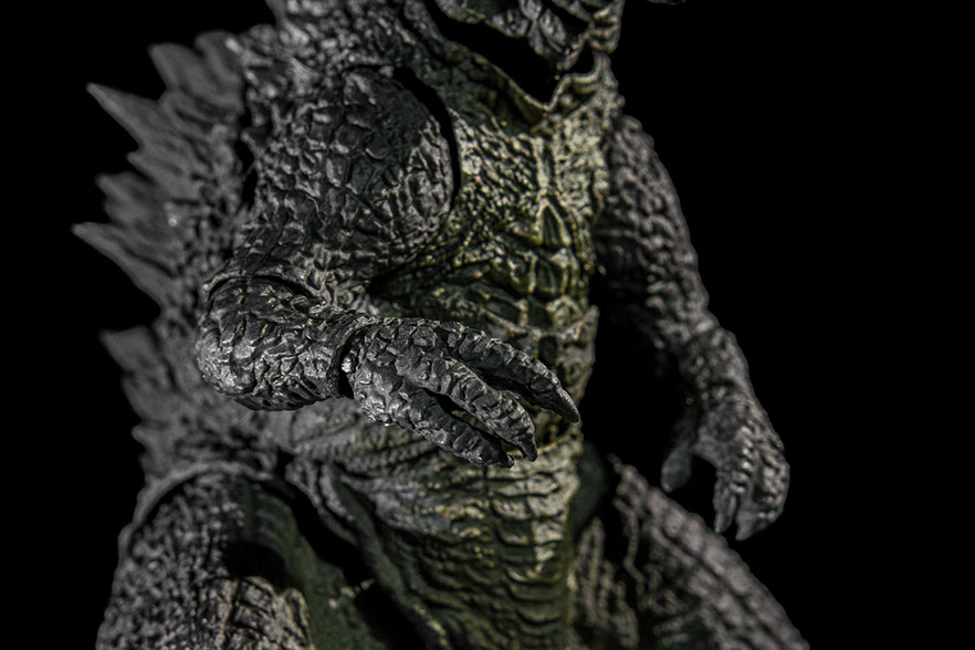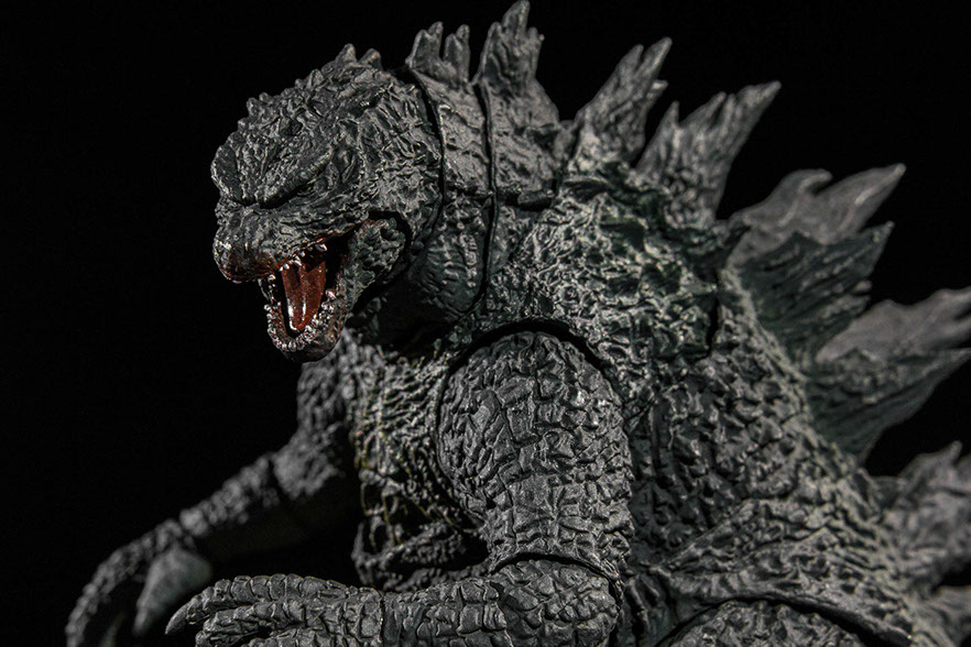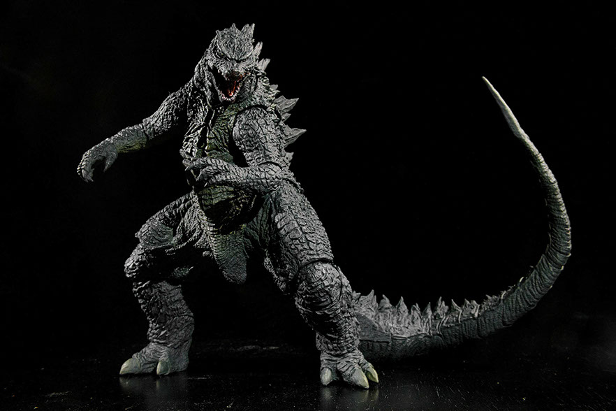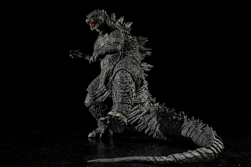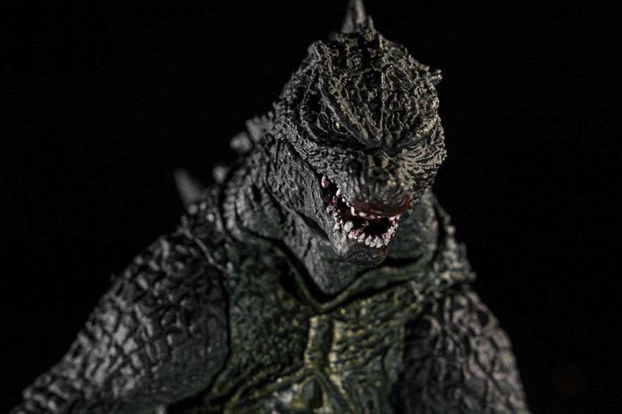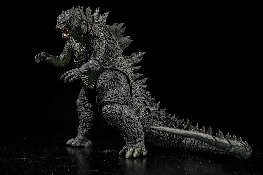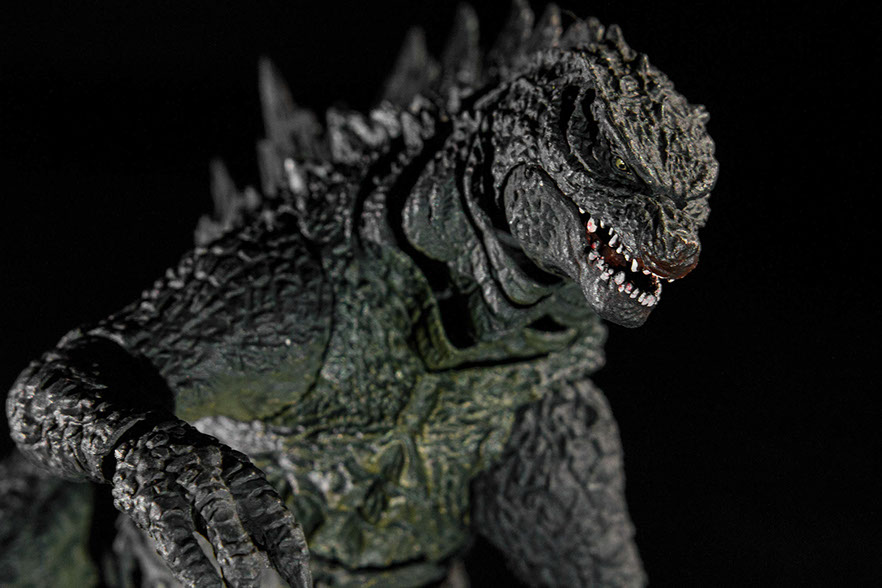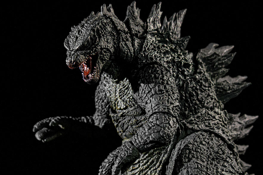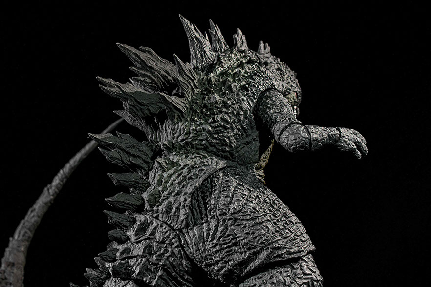 S.H.MonsterArts Godzilla (2014), the first American Godzilla to be a part of the line! This was sculpted by Yuji Sakai from promotional materials and concept art. He was never shown the final movie in the process of making the figure. This explains why there are some inconsistency's between what's on screen and how the figure turned out. The sculpt itself is fantastic and very detailed. The paint is mostly good, except for the face and teeth. There's major paint bleed in the mouth making it appear Godzilla just killed something, and for some reason the snout has a red wash. This is the same across the board for figures of the 2014 Godzilla. The articulation engineering is top notch and dare I say the most articulated figure as of 2014! The tail has difficulty holding a pose, but not impossible. Check out the photos below!