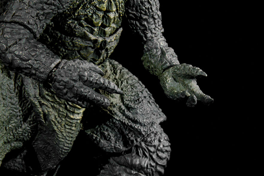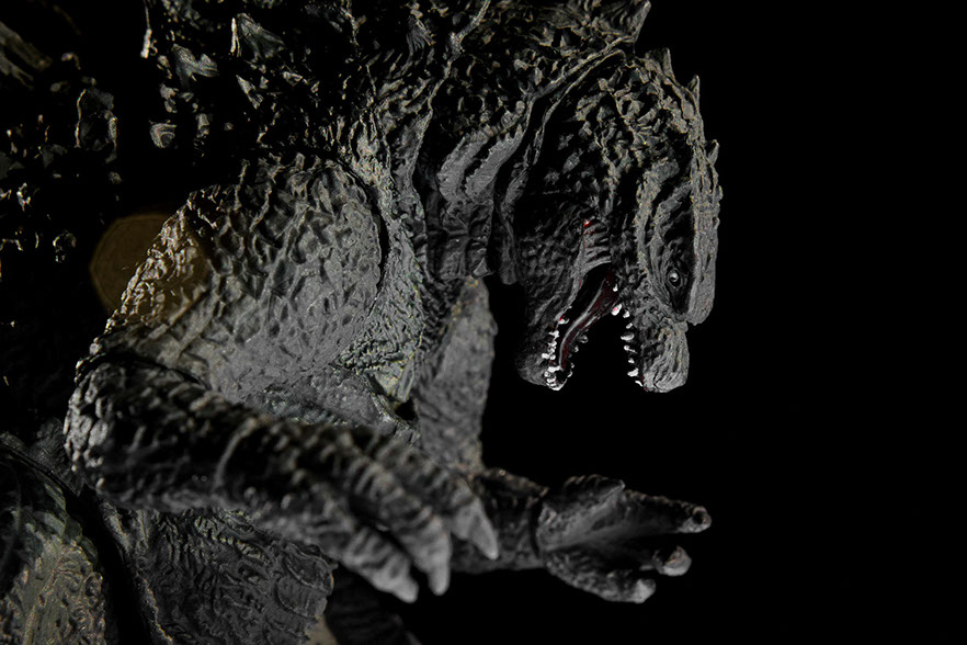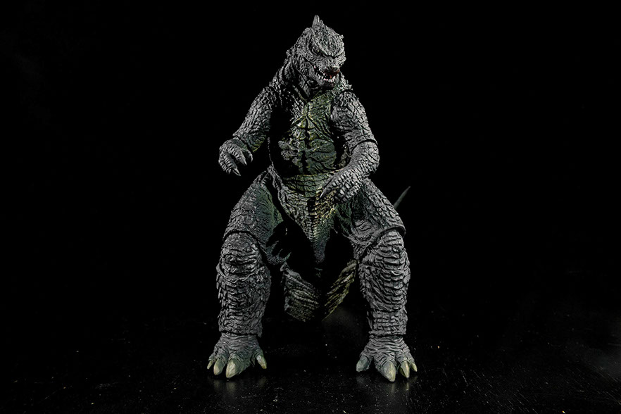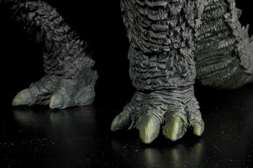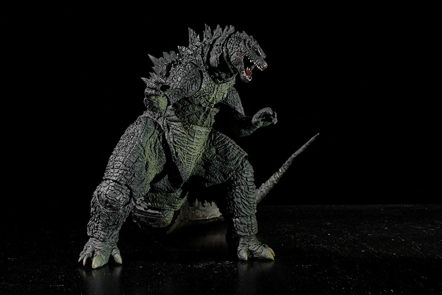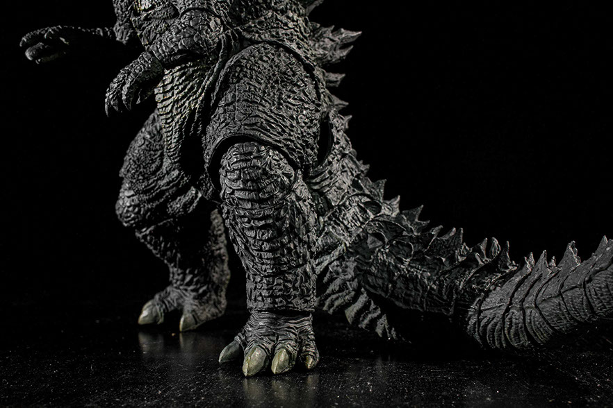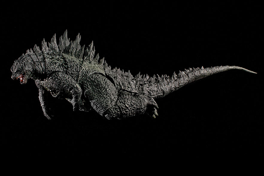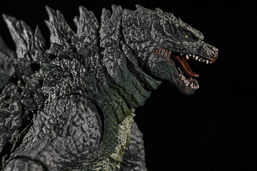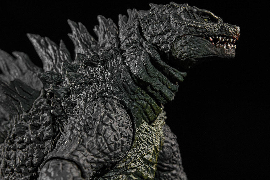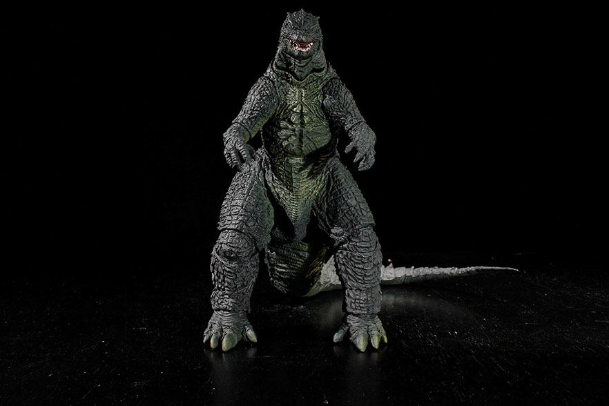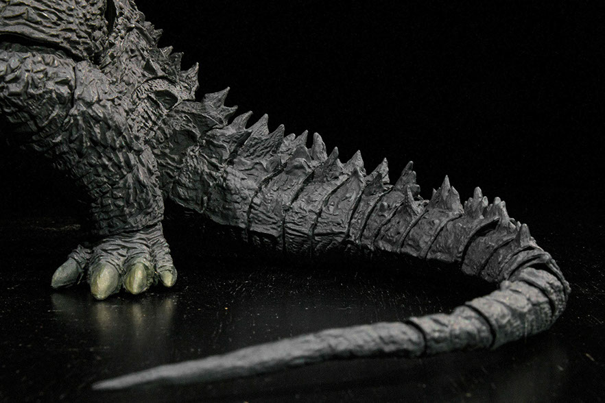 S.H.MonsterArts Godzilla (2014), the first American Godzilla to be a part of the line! This was sculpted by Yuji Sakai from promotional materials and concept art. He was never shown the final movie in the process of making the figure. This explains why there are some inconsistency's between what's on screen and how the figure turned out. The sculpt itself is fantastic and very detailed. The paint is mostly good, except for the face and teeth. There's major paint bleed in the mouth making it appear Godzilla just killed something, and for some reason the snout has a red wash. This is the same across the board for figures of the 2014 Godzilla. The articulation engineering is top notch and dare I say the most articulated figure as of 2014! The tail has difficulty holding a pose, but not impossible. Check out the photos below!
