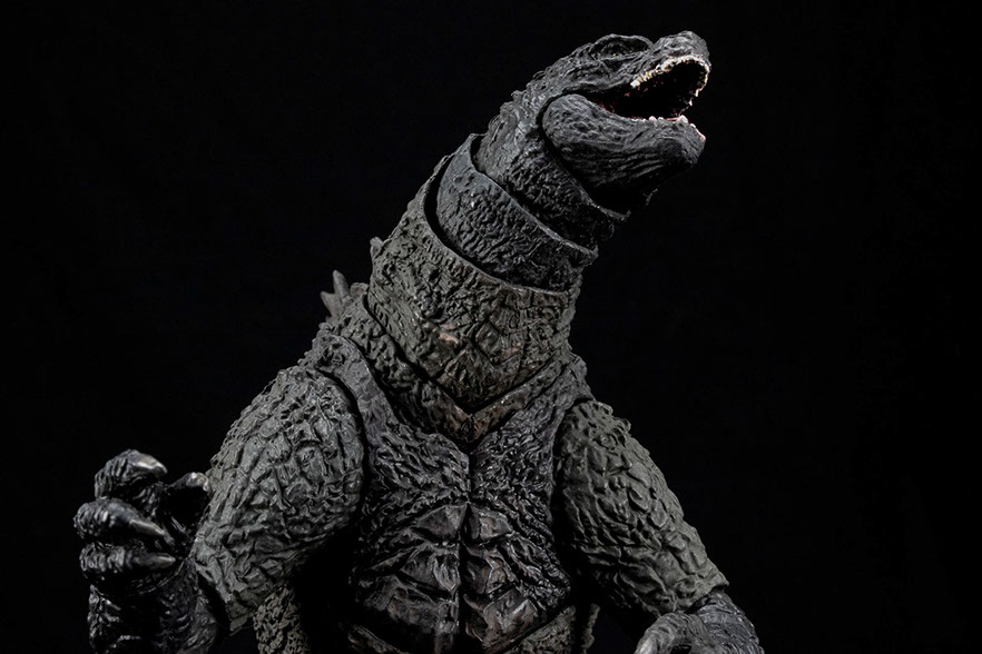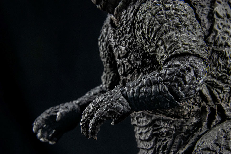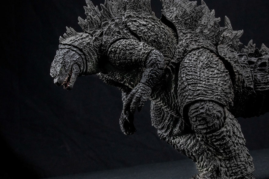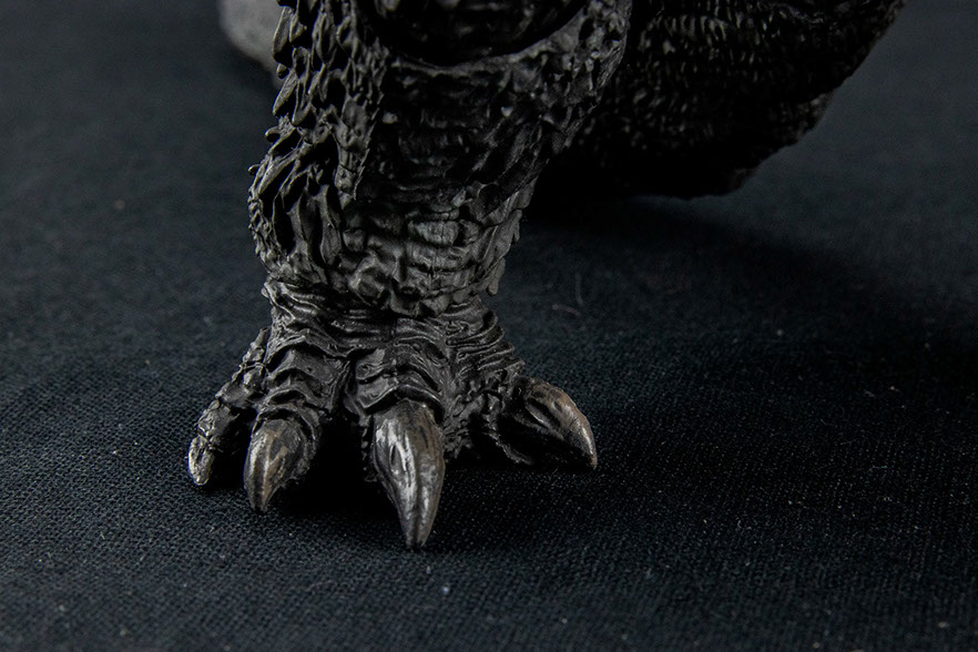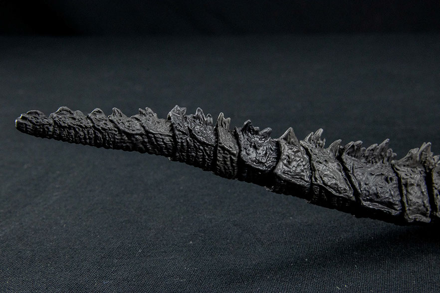 S.H.MonsterArts Godzilla (2019) is an outstanding example of a character walking off the screen to your collectible display. The articulation engineering has seen some improvements from the Godzilla (2014) figure, particularly with the head and neck. With the tail being shorter, it is able to hold a pose as well. Posing bad-ass moments from the film can easily be achieved.