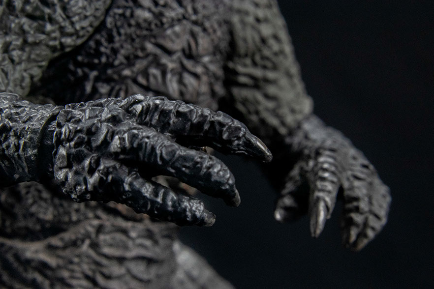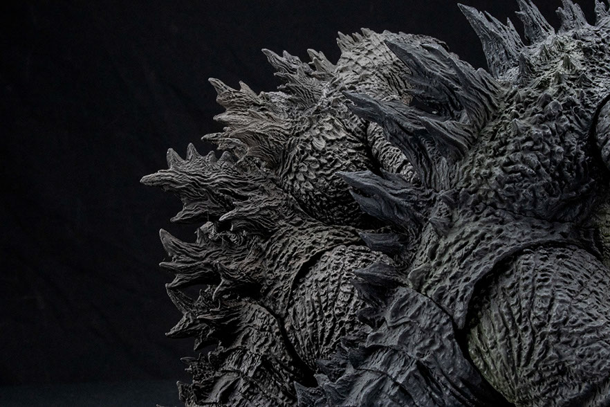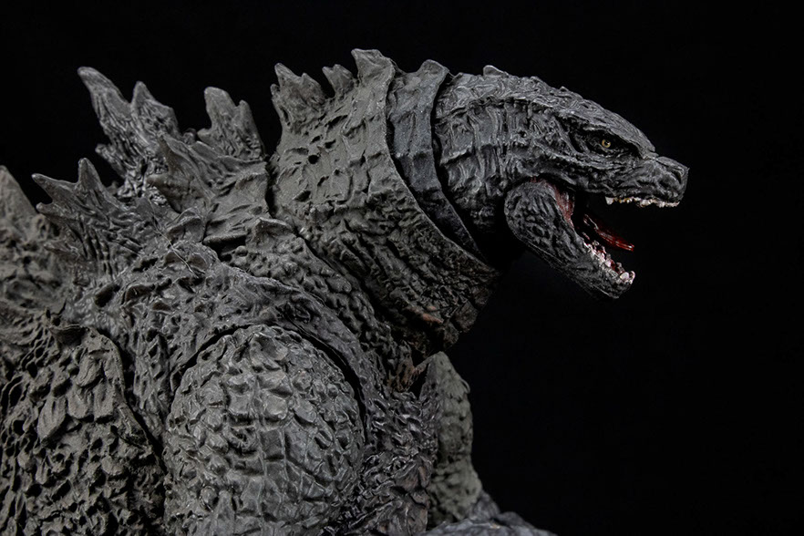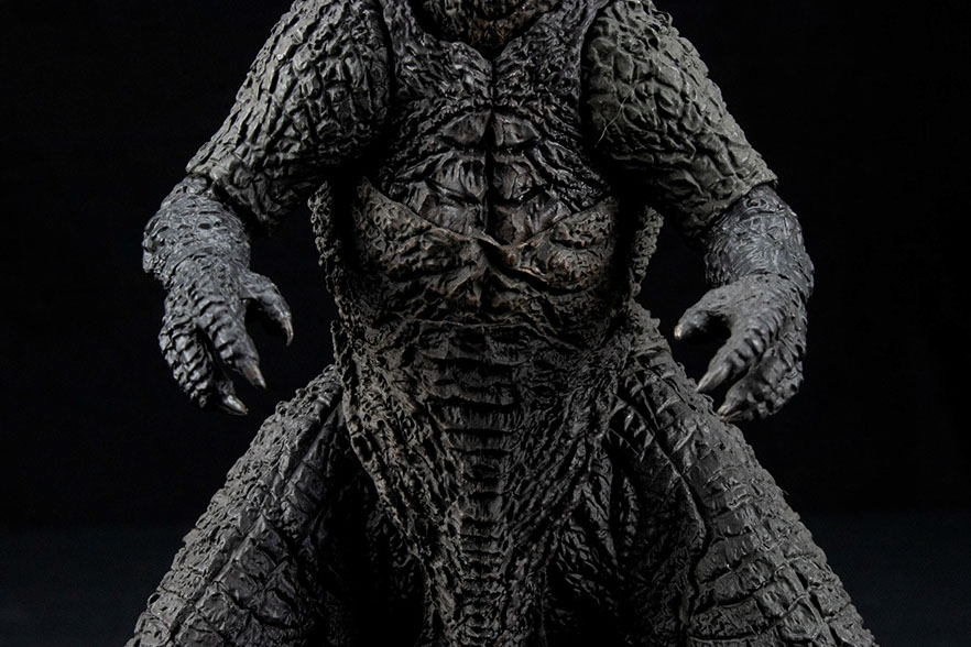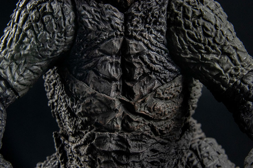 The sculpt is fantastic. It combines the 3D data used from the film with and the skillful hand from legendary sculptor, Yuji Sakai. The paint application will accentuate colors depending on your lighting situation, greenish-grays and muddy browns. The colors are spot on as seen in the film.