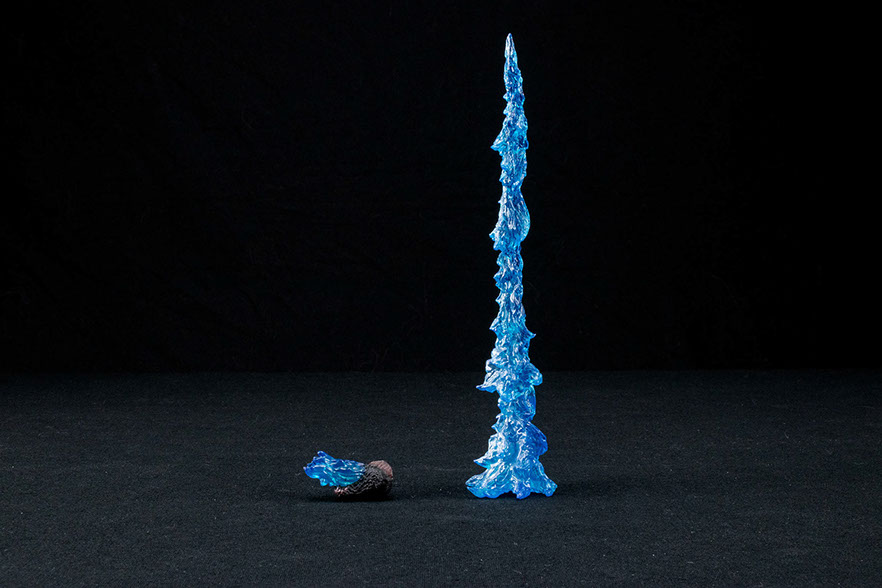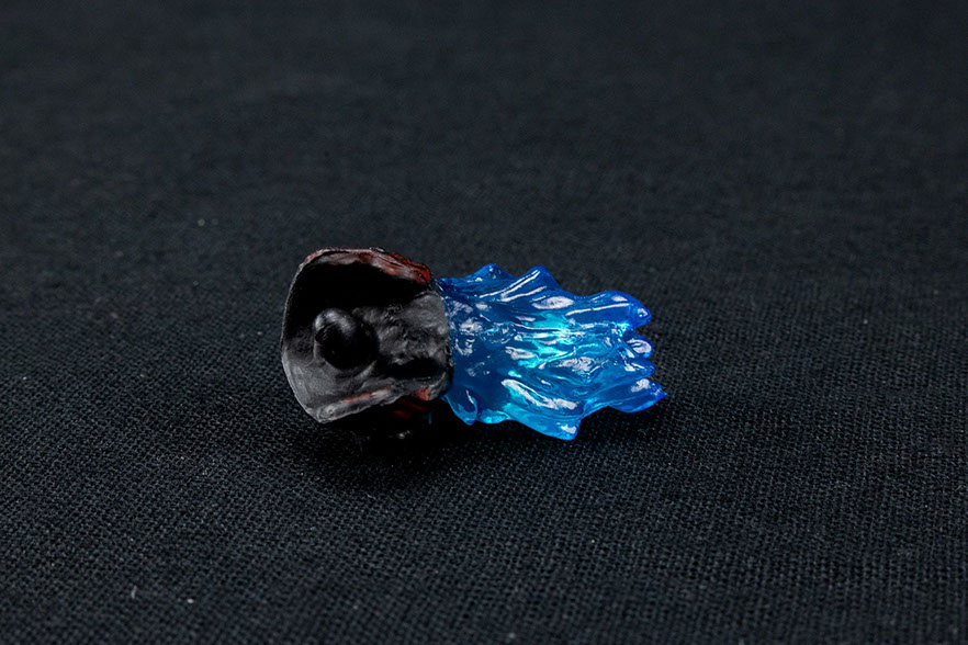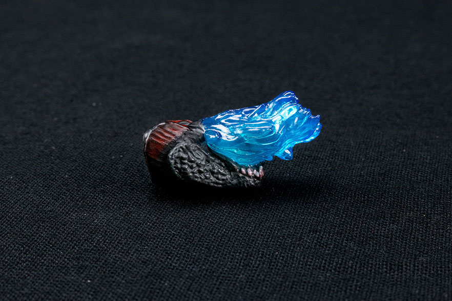 The breath effect piece is welcomed addition. Though it is the same mold as the 2014 release, it is mostly translucent providing a nice glow (depending on your lighting setup). The swappable jaw piece may seem concerning at first, but if used properly, its longevity will last. It's quite simple popping it on and off, and it holds the iconic poster pose perfectly. As a bonus, I discovered that the breath effect can be held facing forward without a stand, however, it wasn't designed with this mind, so use it sparingly. For those who would rather use a stand for the breath effect, there is a hole made ready for use of a Tamashii Act stand from previous SHMA releases. Unfortunately, this figure does not come with a this particular stand.