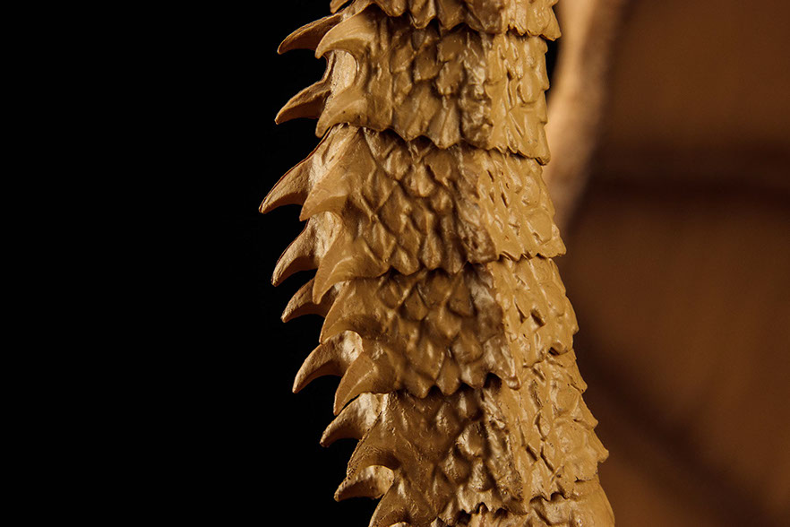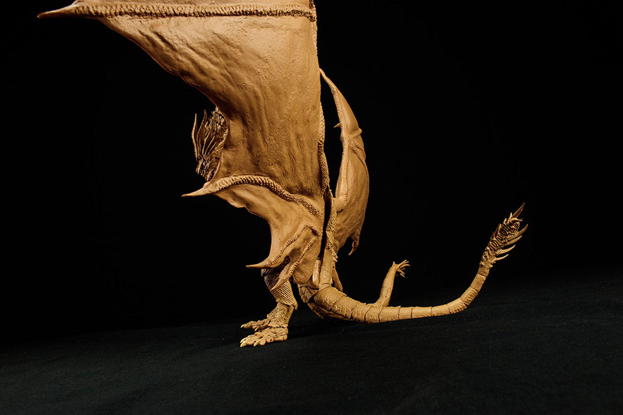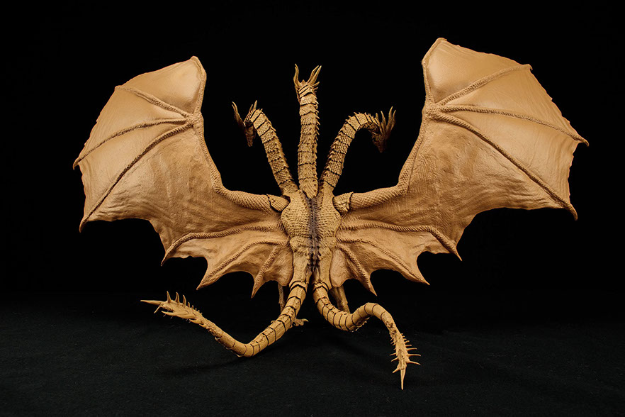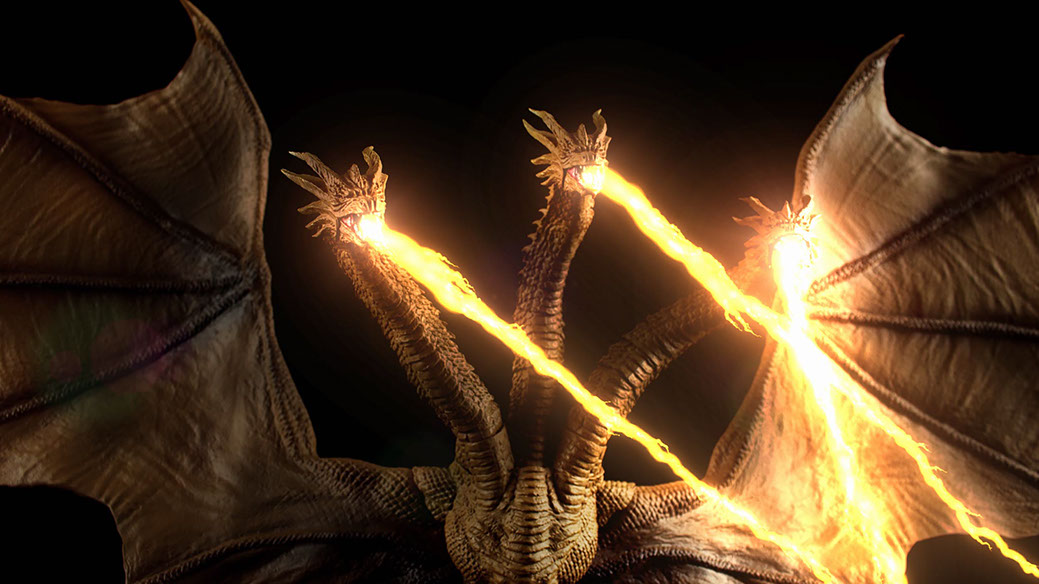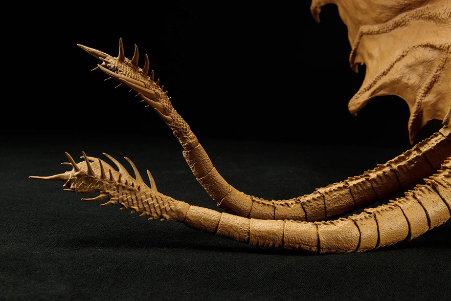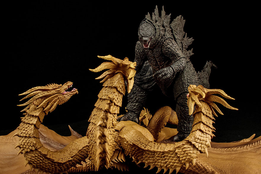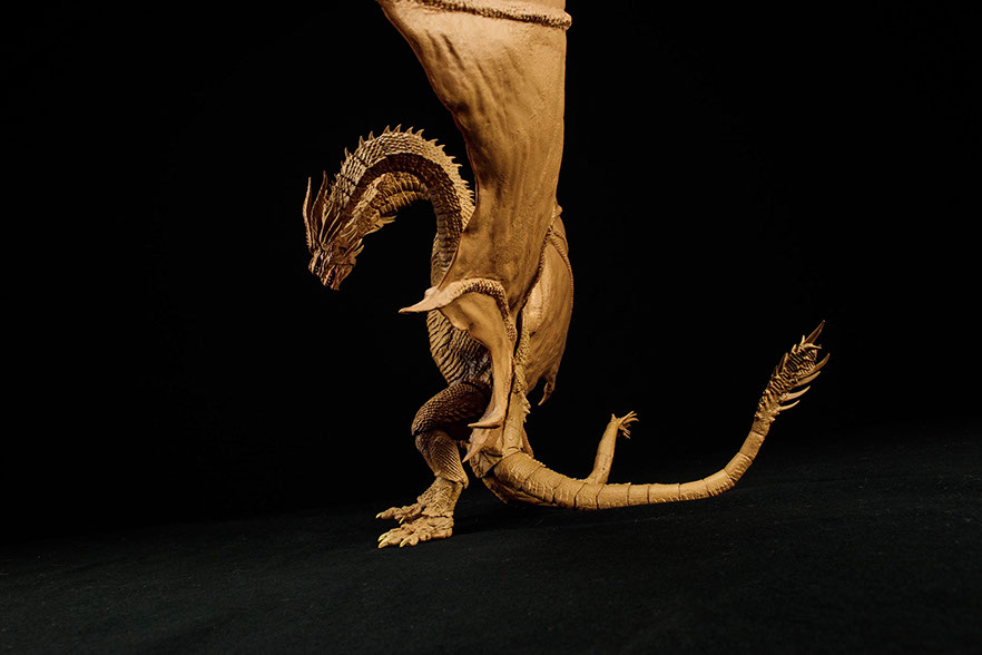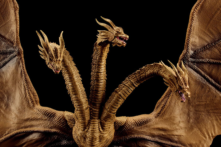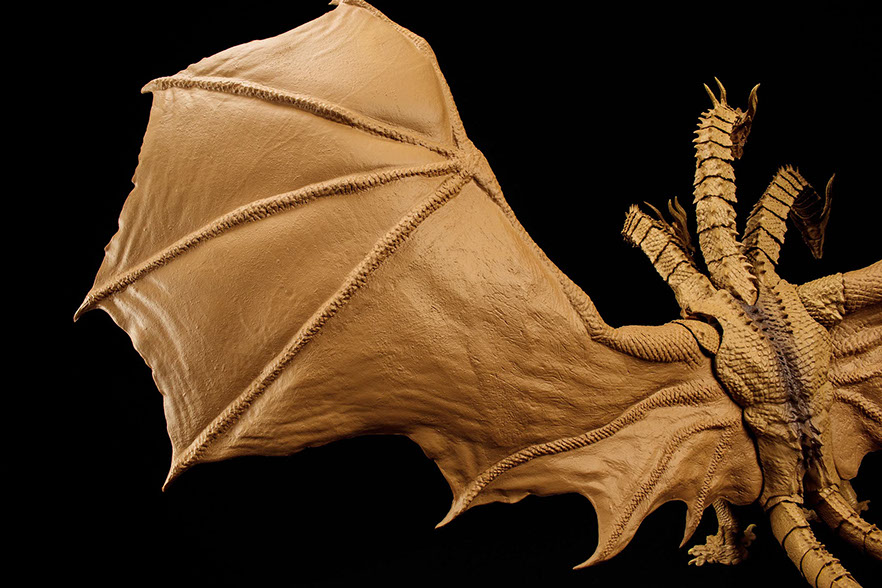 S.H.MonsterArts King Ghidorah (2019) is literally a monster of a figure. It stands at 9.8 inches tall with a wingspan of nearly 24 inches! Finding shelf space for this piece is sure to cause some reorganization among some collectors. King Ghidorah, like Godzilla, utilized the 3D data from the film with additional sculpting by Shinichi Wakasa. However, once Godzilla: King of The Monsters (2019) hit the big screen, it was obvious that the final screen version differed from the materials Tamashii Nations was given during the time of production. Notable differences are in the size and shape of the necks and heads. Nevertheless, it still looks and feels like a good representation of King Ghidorah.